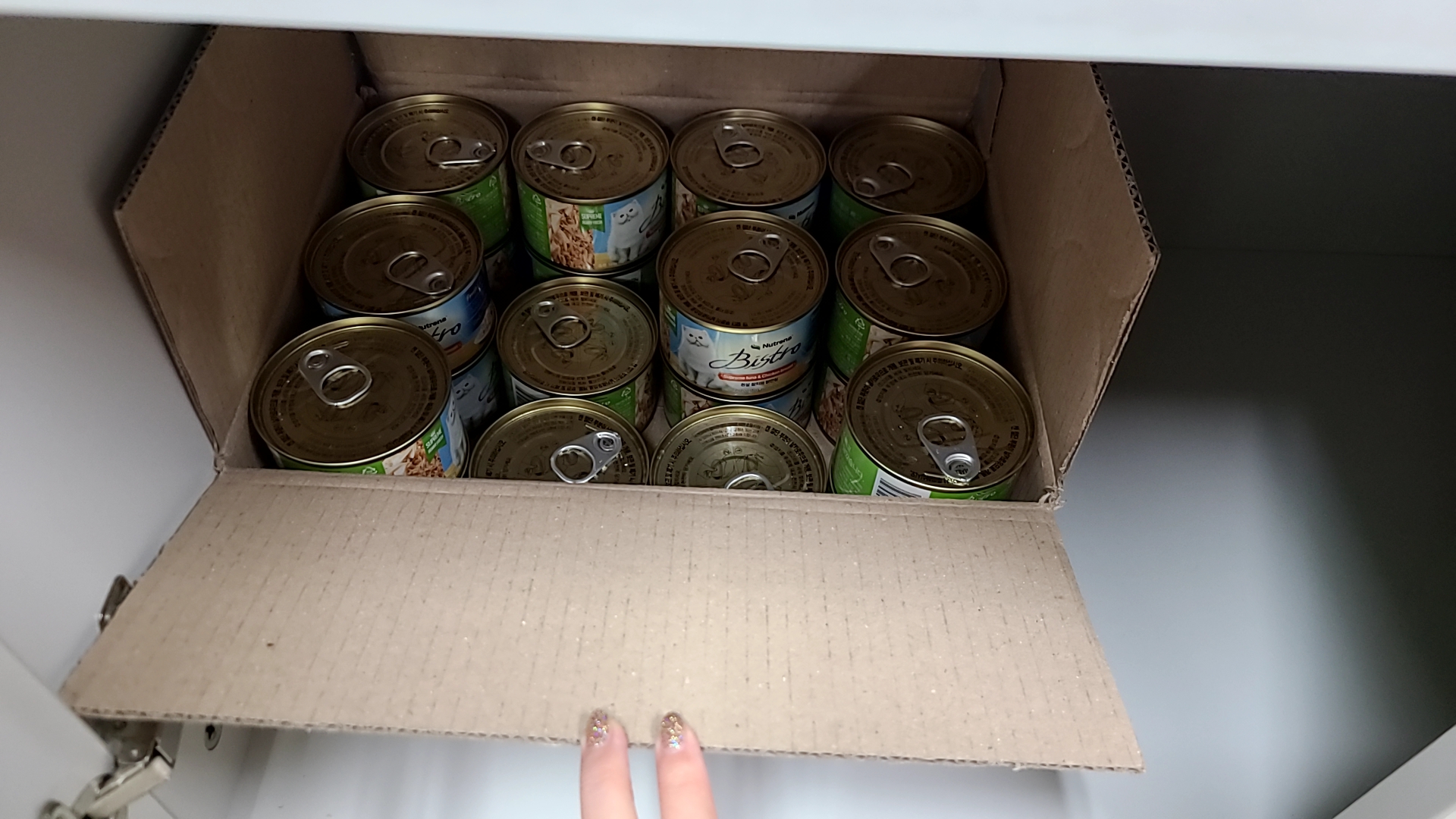 사무실 캐비넷 구석에 숨겨놓은 길냥이들 밥