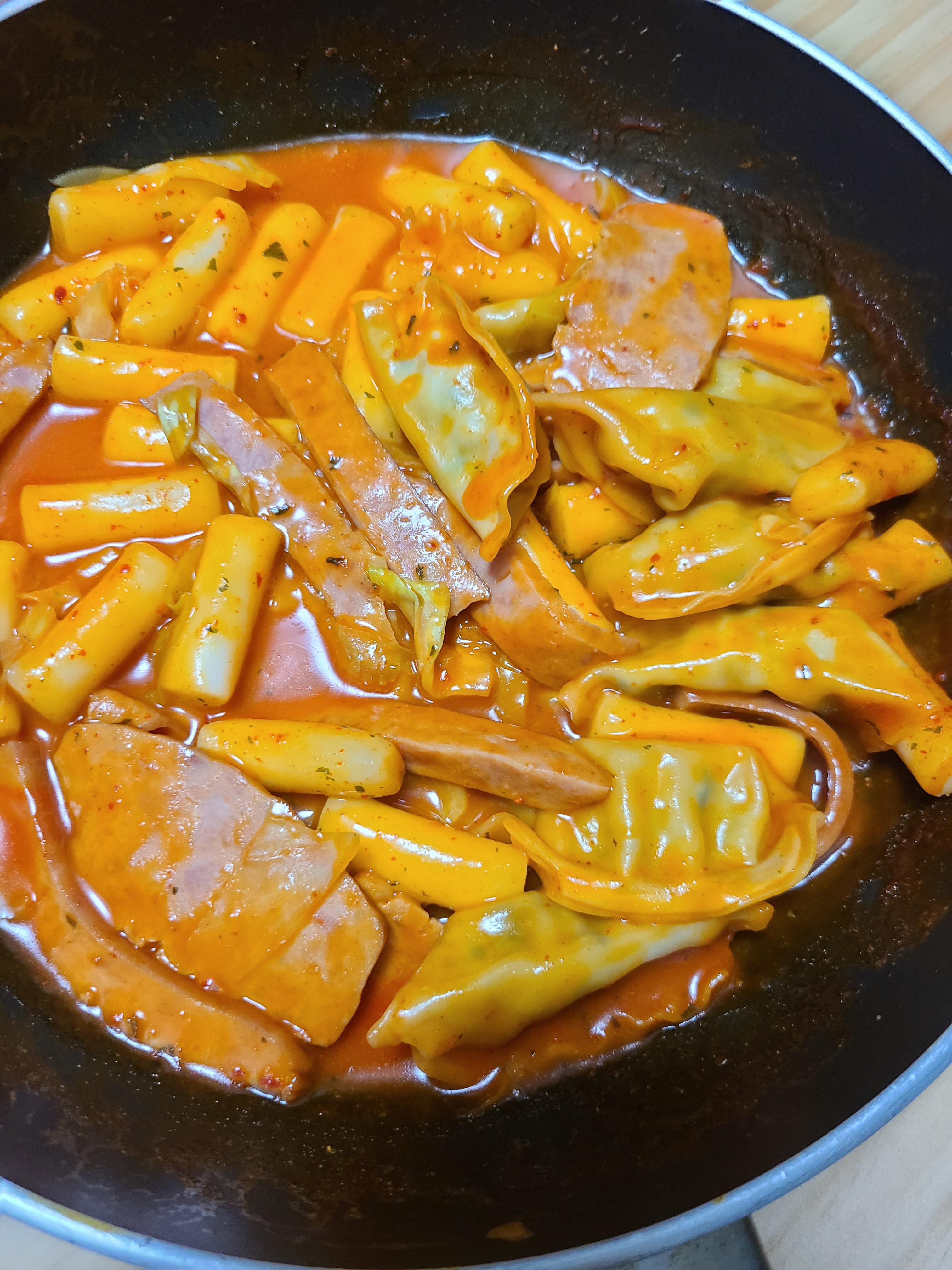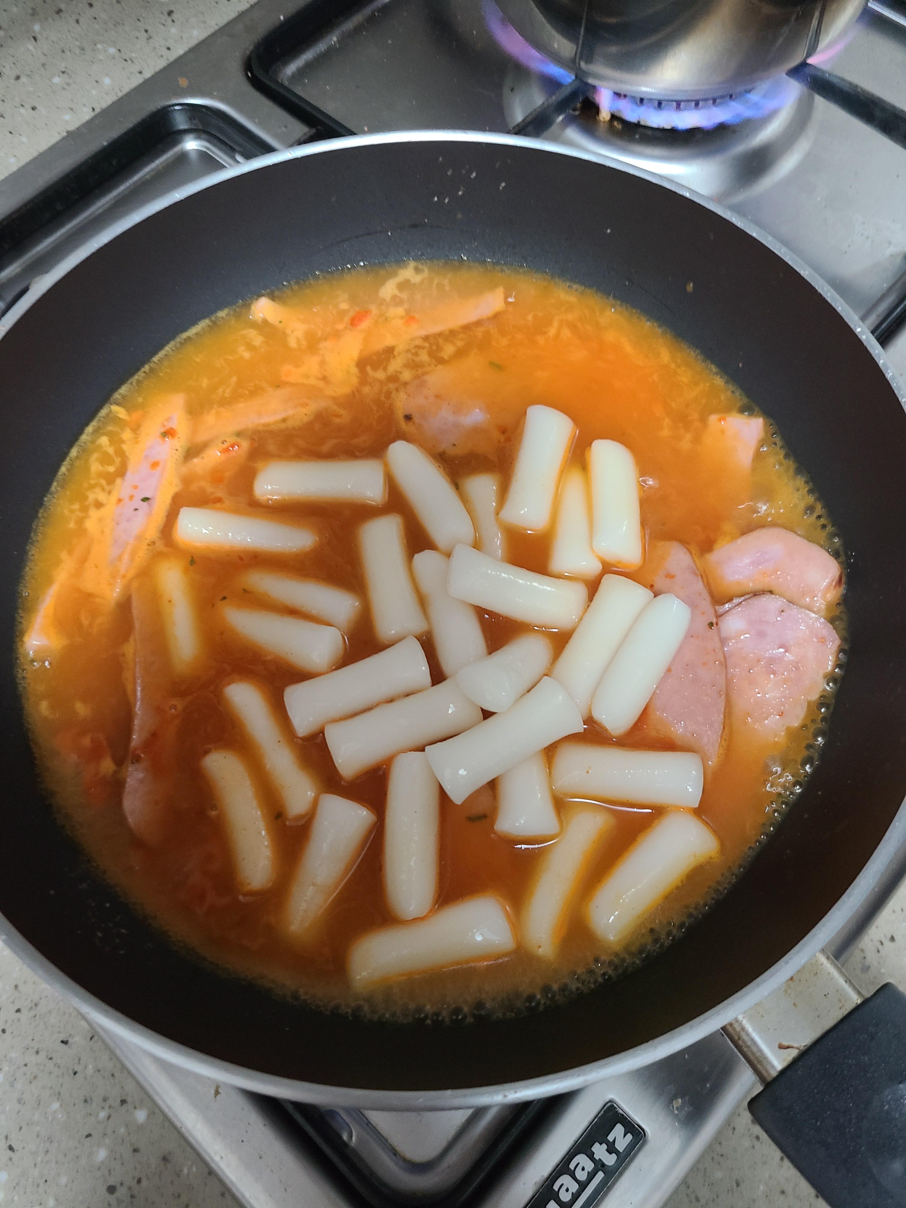 냄비에 물250밀리 붓고 떡과 소스를 넣고 잘 저으면 완성이다.
