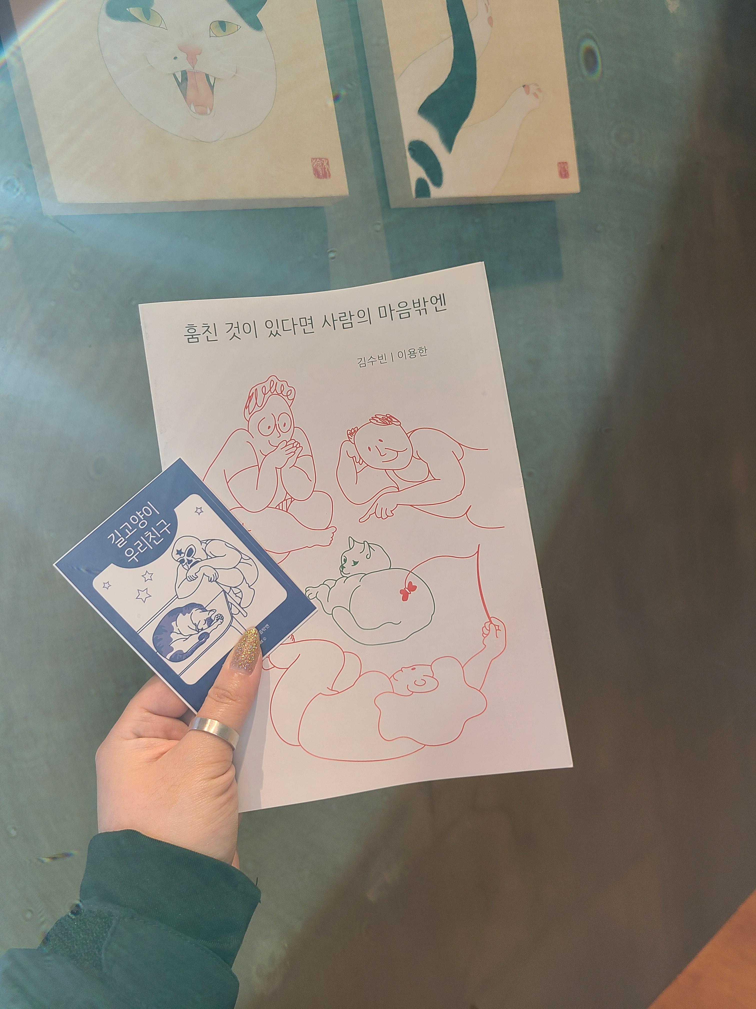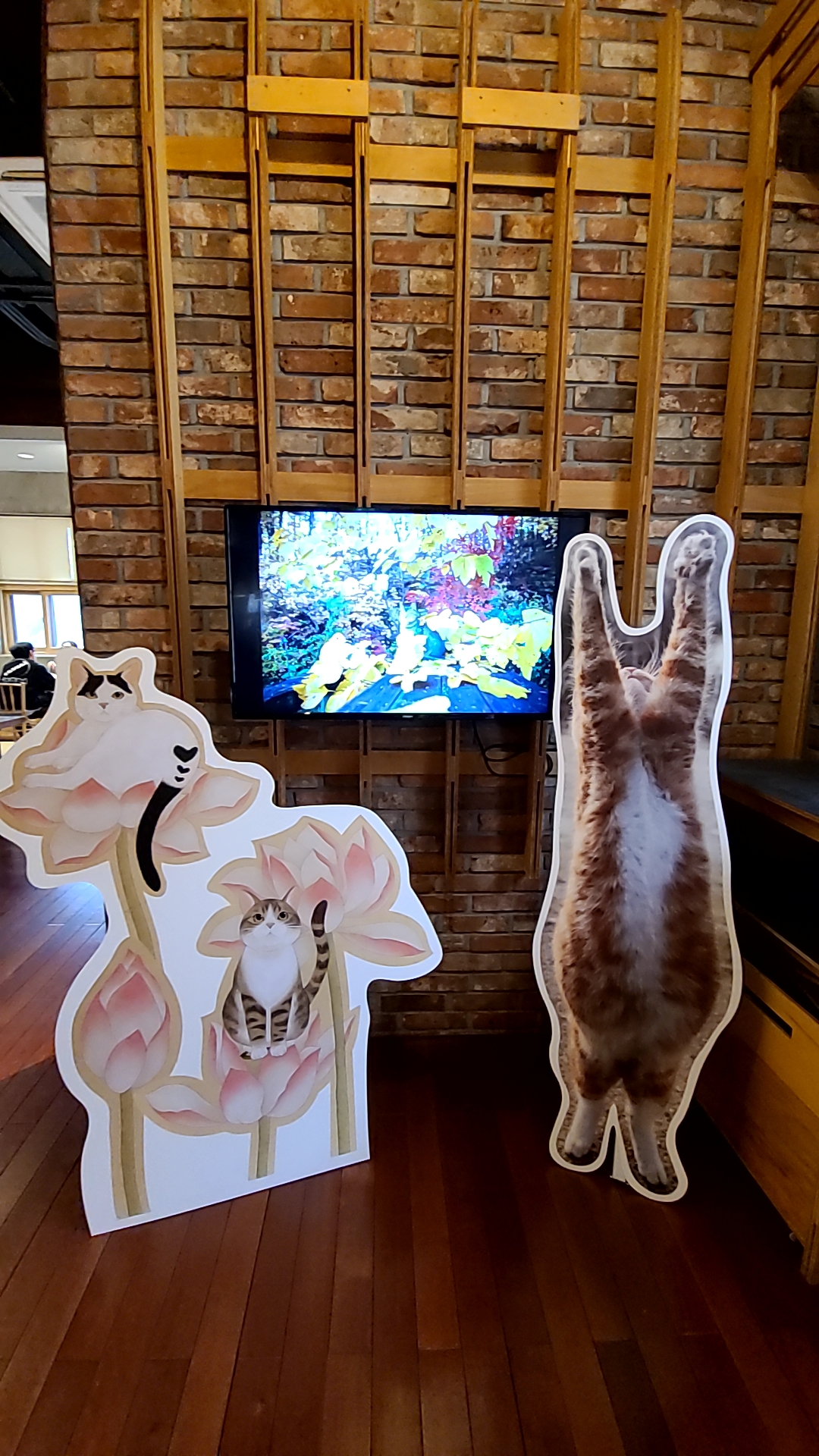 이용한 작가의 고양이 사진과, 김수빈 화가의 고양이 민화로 구성