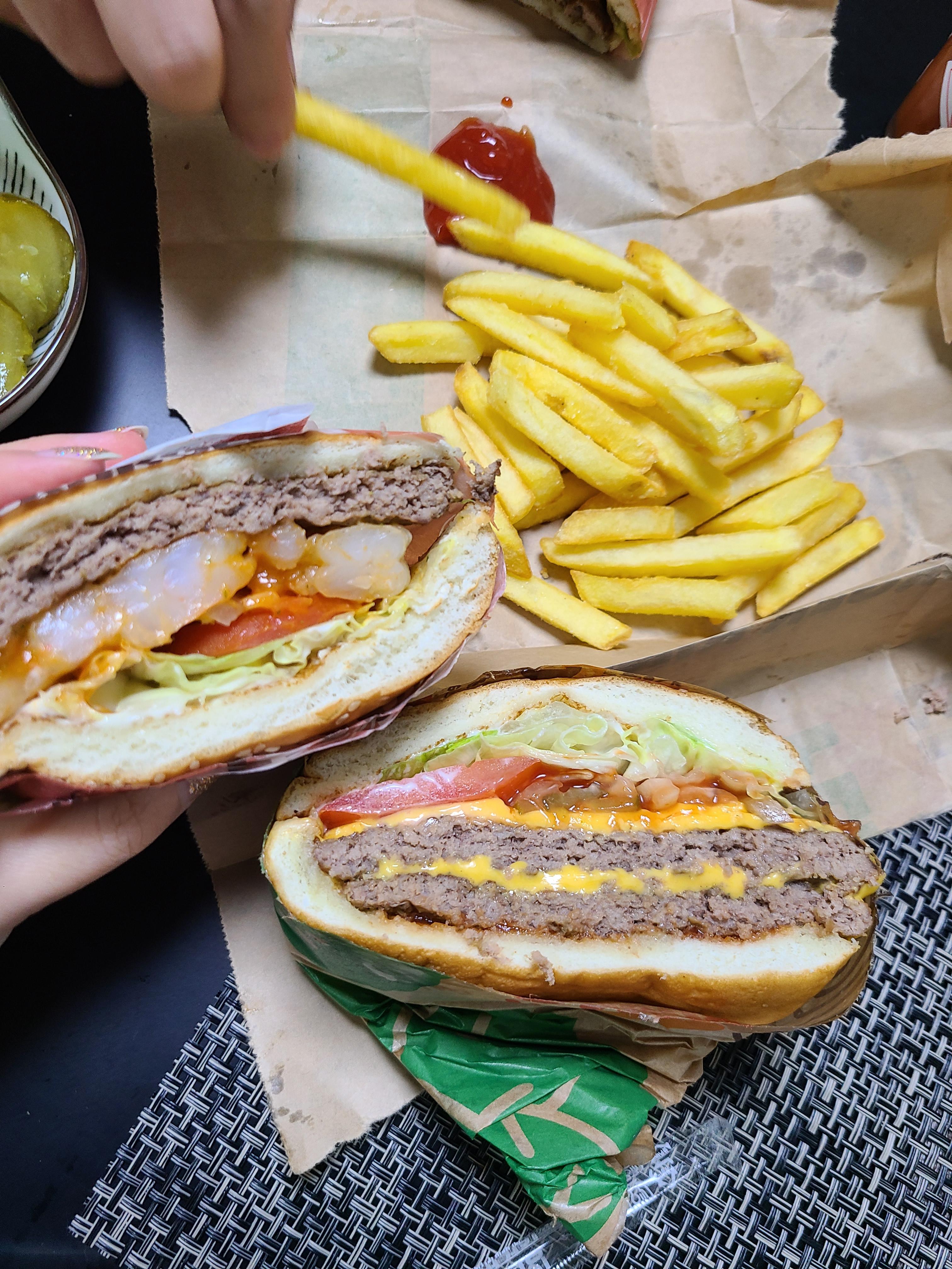 통새우와퍼는 좀 맵다. 소스가. 통새우가 할로 함^^