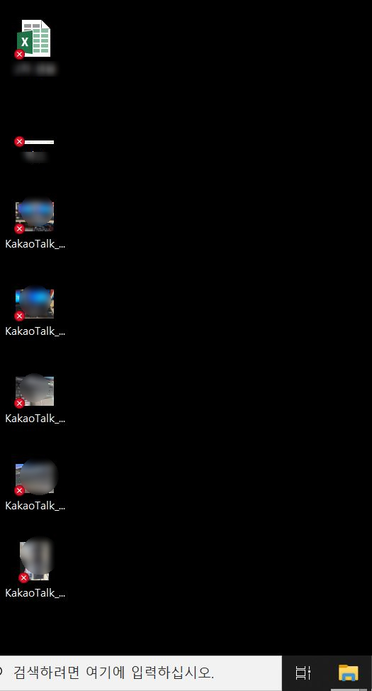 갑자기 바탕화면 파일들에 빨간색 x표시가 떠있다.