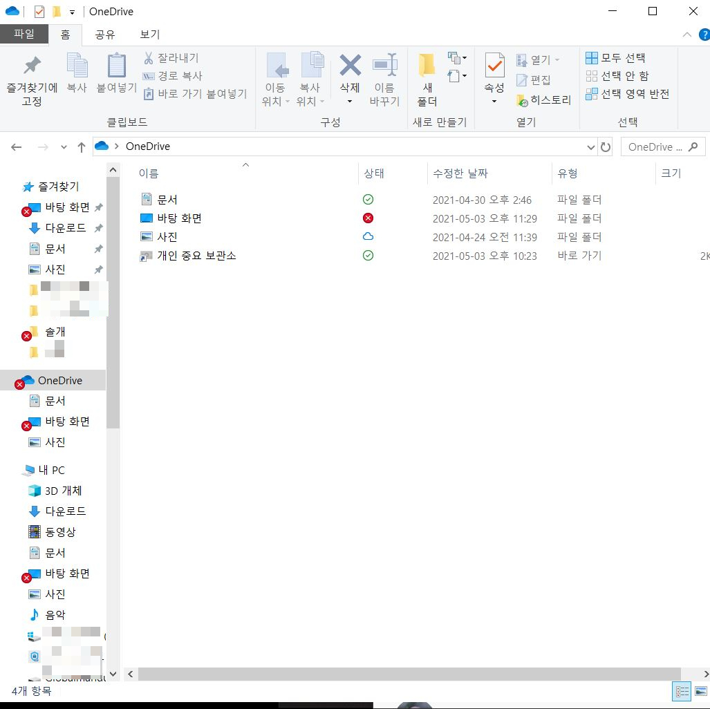 이 x표시가 되어있는 이유가 OneDrive랑 관련이 있나보다.