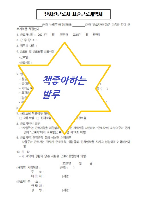 단시간근로자 고용시 꼭 필요한 표준근로계약서 !