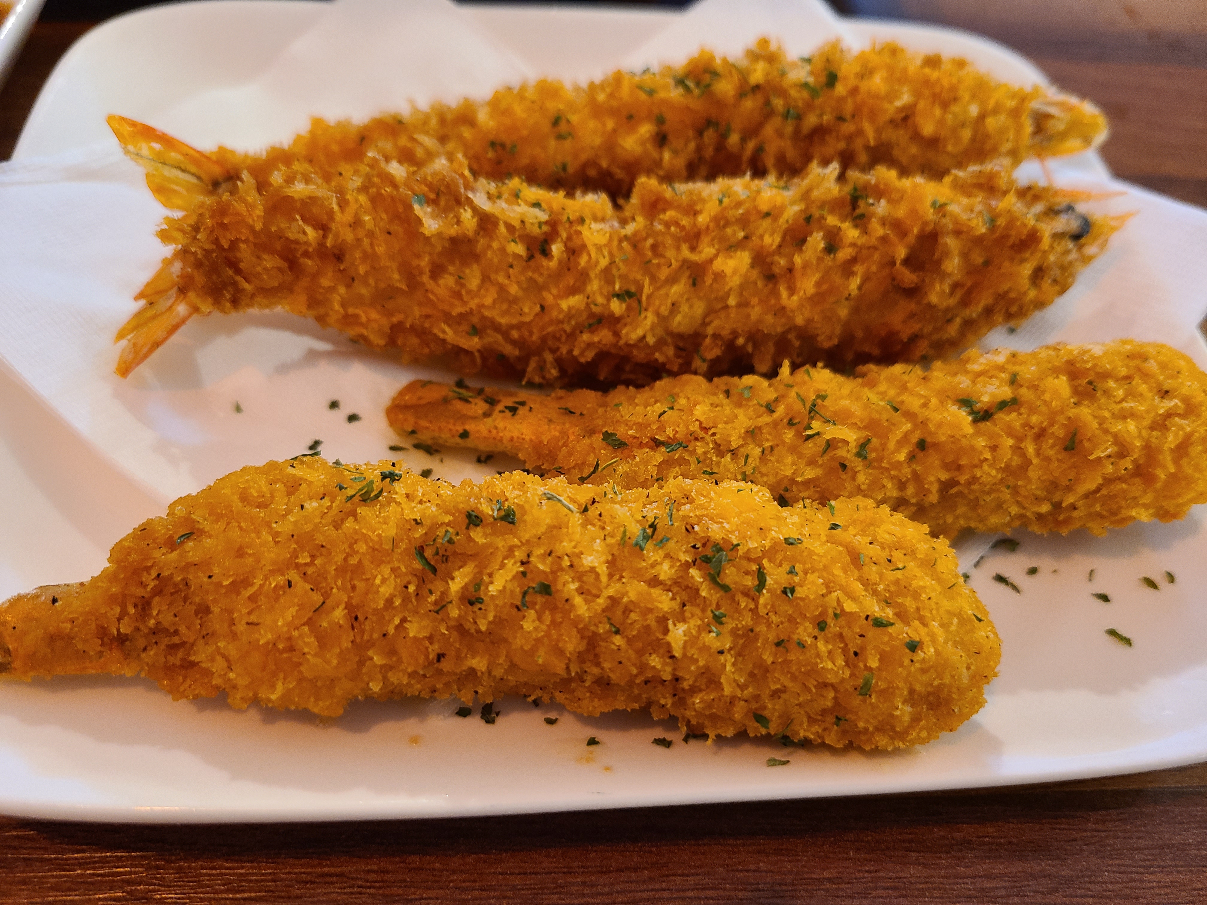 새우튀김은 튀김옷이 두껍지 않고 맛있다!
