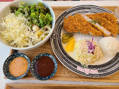 근데 나라면 짙은녹색계열로 하겠다. 프레시한 분위기로 돈가스의 느끼함을 가시게.