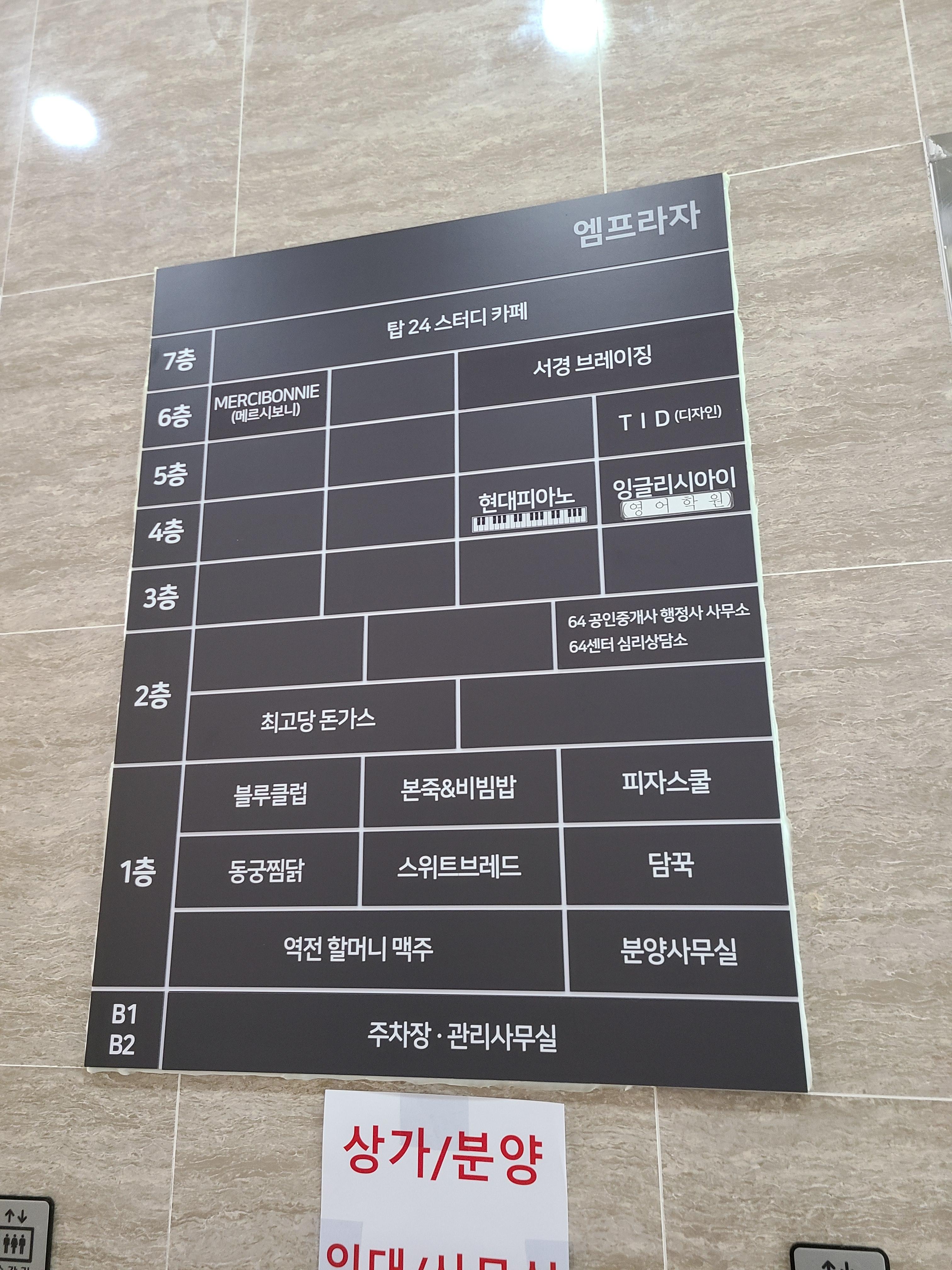 엘리베이터에서 내리면 앙증맞은 글씨로 가게 찾는길을 알려준다.