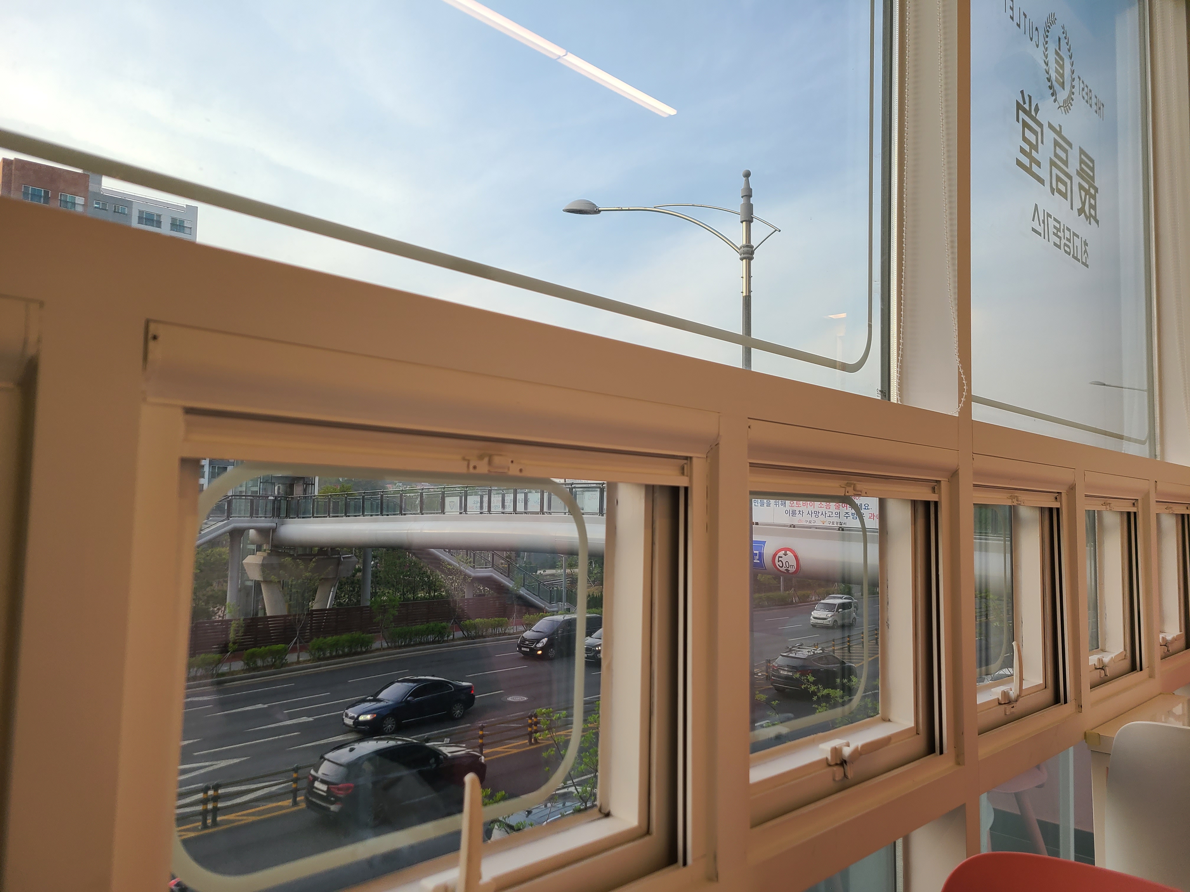 창가옆 좌석은 대로변과 수목원쪽을 볼수있다.